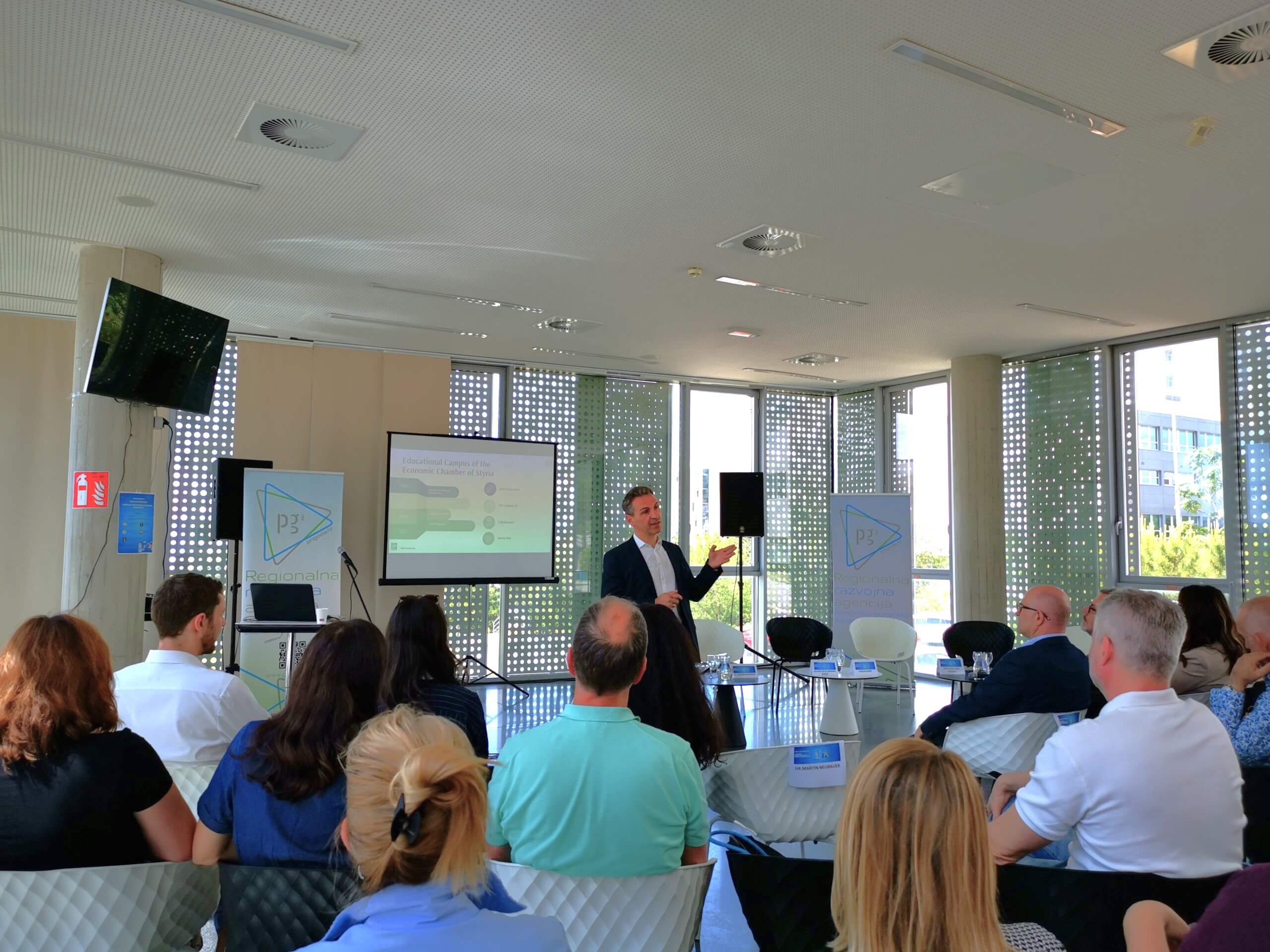 Dr. Neubauer je predstavio aktivnosti Gospodarske komore Štajerske, a posebno je predstavio austrijski model dualnog obrazovanja i Talent centar Graz kao orijentacijsku platformu koja podržava mlade ljude u školama i programima osposobljavanja. Kao ključnu kompetenciju uz niz digitalnih vještina, istaknuo je vještinu „učiti kako učiti“ kao preduvjet za prepoznavanje i razvoj ostalih talenata. Austrijski gost predstavio je i novootvoreni Centar izvrsnosti u Grazu, te projekt „VR, AI  i Digitalisation“, kao aktivan alat za modernizaciju regionalnoga gospodarstva i prilagodbu novim trendovima.